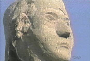 The beeTvs are absorbed by the face of Cain, who has marbles for eyes. Doesn't like to use these lenses to look at the world. he prefers staring at the swirls inside, which he sees as a form of mineral poetry, incitement to action. Ask him any question, and he'll point there, for you to stare, as if you could see the same things there (as if you would really want to look there).