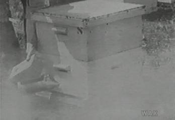 The next day, things are back to normal. It's time to go to work with bees. You've been to the battlefield and the Antarctic, however, and the tools of the trade seem to have gathered a few extra meanings, private to your own experience of course, and also without practical value. You wouldn't think of sharing these thoughts... but you do pause, picking up the bee smoker. The white haze falls out of the cone. souls fleeing across the ice, heading towards the lens of your camera. your brain felt the impact as they hit the trapping film. Later (but contiguous in your thoughts)...poison gas lifts in streamers through the air, following the vacuum and turbulence left behind by explosion of a portable grenade. At the edge of the battlefield is a hive. In the hive are bees, warriors with multifaceted eyes like cameras that swing out over the world, past the limits of the their wood home-cube at the edge of the battle, up over the hill, village, town, high, towards the sun, which guides and propels the searchers out to the limits of the nation and beyond, searching for food to bring back to the hive, to make into honey. Honey is the business, and at that, Hive-Maker starts to work with his bees.