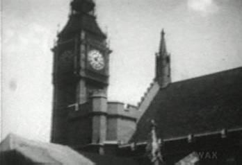 Big Ben, famous synchronizing device, caught in a strange time-void. We move from frame to frame in a blur, each blurred tick of the tall clock caught like a bubble's surface in the mesh of a substrate-ether. This ether, though empty according to all definitions, still has the ability to shape through absence. Oh, how we miss the times that have passed; though we no longer give them thought, it is certain that the void of our attention, and the missing shape of their substance, still blur the blue halo that surrounds such famous clocks at middle-day, just when we pass by on the way to lunch, our eyes searching the polarized light for the time on the face, and across the faces of the time, people on the street, for one or another among the masses of the people, the one who we do love.