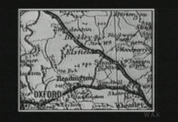 Oxfordshire, probable former physical location of many events in this narrative section. Roads run like veins across the named