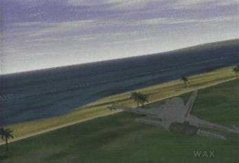 Libya, already in progress. The artificial haze scatters in front of us, as the polygon landscape rushes beneath our enclosed feet, and the shoreline approaches. As the jet reaches the yellow strand, we tilt to fly along it, or perhaps the earth tilts as we remain stable. Flashes of mirror light greet us.