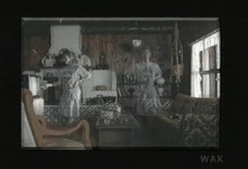 An elliptic moment brings us to an identical moment in that living room space. Melissa had been pondering what she saw out that window, but this pause disappears. She turns to the TV on and rubs dust off the top. The dust grabs her palm, hangs there, until she brushes it to the floor. Some of it will get stuck to the bottom of Jacob's heavy shoes, and just a few particles will stay with him through the Entire Movie, from here to there.