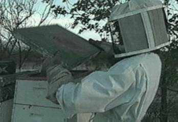 hive. He places the top on the