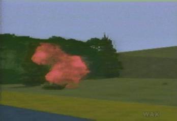 Terror of the exploding tankoid, where no time has passed; orange flame bursts into the fake