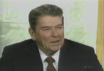 Reagan moves his head and eyes. Under the table, however, inside his left shoe, the baby toe (actually a big toe that never grew, and was given the stunted, face-saving name of ...babytoe...... that's the story of how the real babytoe lost its' name...) wiggles one time every 4.7 seconds, as it has during every minute of the President's reign. A source of fatigue and fear for the President.