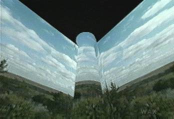 The body of this bird shows, mirrored, the roof of a house, surrounded by strange tree-like structures. Roots that scour the ammonia-air for nutrition... which they suck down, and then excrete in as lumpy concrete, auto-forming in coherent shapes... e.g. in shapes like this stone log cabin here at the Garden of Eden.
