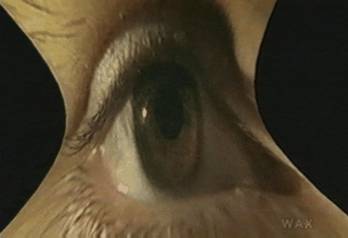 reappears, looking up and around, as there must be much to see. The hyperbolic eyeball, filling more