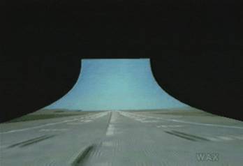 at infinity). Darkness can be seen beyond the edges, which are usually lit by the lights of cars on the access