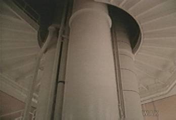 Inside the building of the sun telescope, we see a picture of the light pipes. Refrigerated vacuum storage place for the light of our ancient sun (slowed by the medium of irreality which surrounds our green planet, it is actually yesterday's light which is always arriving at our eyes. This machine goes further, making light go as slow as stillness, and then storing it in rings on the inside of this metal tree trunk).