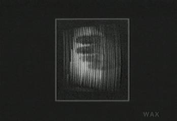 A white box surrounds a live Nipkow-dissected and reconstructed hand, turning on itself slowly in the constrained space. These images were transmitted as strange sounds over the radio, and reconstructed by a special set bought as extra attachment to the home radio. There were several hundred station broadcasting images like this throughout the world in the late 1920's.