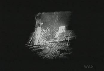Two astronauts meet each other outside the Lunar Module. There is a