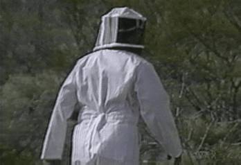 Jacob walking away from the camera through the dense shrub. Lost his housekeys out here yesterday, and though he wants to go home, he feels he can't until he finds them. Walking around and around in circles, no lunch, no dinner, no worry, however, he'll just keep at it patiently until they are gleaming right in front of him (he spends so much time on this last image that he doesn't actually pay much attention to the shape of the ground in front of him, and it is likely that if they did appear in front of him, he'd miss them. He needs a bit of help, which the bees will provide in a moment or two, our time).