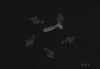 Obsessive detailed spins and arcs; these letters fall for a million years, clustered with others of their kind, and all the while they obsessively attempt to perfect the spin of their fall... playing with shudders that take them away from the group, a meter away, two meters away, the others are all becoming somewhat dark and faint, hey, wait a sec, wait for me... and then with a quick and certain counter-shudder, sliding back to join the crowd. This is their entertainment, this is their meaning, this is what they do all day long, all night long, all year long.