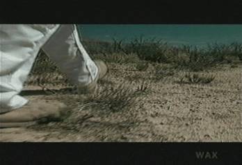 Jacob's feet again traveling through this desert. Step by step, frame by frame, careful all the time not to step on the crack between the frames. Jacob has a pretty simple method for keeping track of the number of steps he takes (as a safety precaution, so he can find his way back if he has to). One to Ten, he uses his fingers to do that. After the first Ten, he closes his right eye, and counts to Ten again. Then he closes his right eye. For Forty, he touches his tongue to the room of his mouth, and closes his left eye. Using such ticks, he figures he can count to a million (hopping on one foot, both eyes closed, elbows at his sides, tongue touching his back molar, etc).