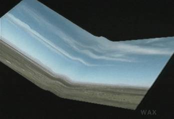 A fabulous winged mechanical angel, or angle, twists itself back and forth with a soft flapping, as the living desert and the mountains beyond appear on its back. Subsonic, winging over the dark jungle night. A dinosaur-sized dove, dispatched by the planet of the future dead to give Jacob a ride home from wherever he is, neither here nor there.