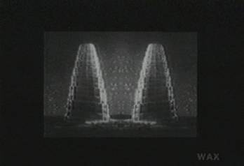 Twin Babels, with symmetric spires, against a background of many stars, or just simple floating lights... glowing bees, of the kind that once made Babel famous... that's how the city made its money, and what it famous for, before the famous tower. the HoneyBeer made from (brewed inside? The record isn't clear, in fact can't be translated) the Hives of the Glowing Bees of Babel).