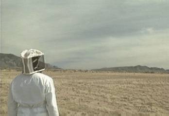 Jacob still looking up, trying to put together the right words of thank you, and also hoping that he can still remember how to send those words up without visible speech to the quickly departing B52 that was kind enough to drop him off here... somehow he got seriously off course (looking for food?), and would never have made tonight's port of call without that little bit of friendly flight. A bleep, a pause, and then Jacob, already forgetting, turns and heads towards the telephone. the phone's white case is open, and the marker is seen in the background...