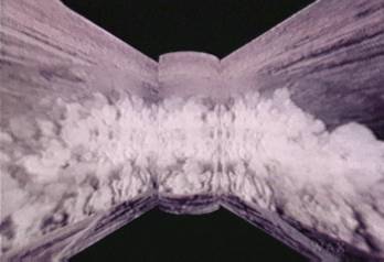 A proto-angel explodes, hoping to shake the wet from its' new wings.