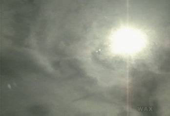 Looking right at the sun, seeing we can't see into it... most people alone in the woods at night are afraid of things sneaking up on them through the dark. But the bees, even though they worship the sun, and have based several of their core technologies on its daily reappearance, are afraid of bad things sneaking up on them out of the anti-shadow, the too-bright spot in the middle of the sky, which leads who knows where...