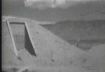 Jacob turning his head, motivates sudden images of the bunker at the time of the famous test of the famous bomb (how wonderful, wasn't used because they it blew up when they tested it... though there was another one left over, and where did that go?). A soft edged black and white form with a clearly visible door, and those same mountain ridges behind. A garden shelter, inviting travelers into its shade... all that is needed are a trellis and vines (no vines? Use these rattlesnakes, they don't move much), some water (need to run a pipe out here, than can put the electric and telephone lines in the same hole, and we'll also need something heading back, connecting to the sewage trunk line. Everything all planned, then Blam someone blew up that bomb