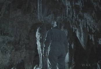 Some noise on the ceiling might have attracted his attention. Or maybe he has to scratch his chin. The ceiling has come closer. We can see the strange shape of Jacob's profile because there is a strong light above and behind him, of no obvious source. Stone swirls in wavy patterns, and a telephone rings silently in a box made for the use of cave-maintenance professionals, just around the corner from here.