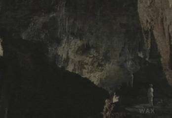 Back in the giant cave space, Jacob is looking up at nothing, and nothing looking up and back at him. Don't expect clarity when darkness is involved. Anyway, it is night, Jacob is underground, and the sun is out so the mushrooms can grow, while the butterfly bees fly from shot to shot, gathering sap for glue (to attach wax to blankness, lots of glue is needed, otherwise the cave-hive will fall forever, rather than float and circle like a good kingdom must).