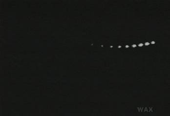 Beads of light travel from the top of the frame, like bubbles heading to a cartoon balloon showing what one of the undrawn characters is thinking. The unwords are off screen. By a similar process, back at the Society for Supernormal Photography, the dead tried to speak to Ella, and the dead wife of Zoltan Abbassid was therefore able to bring up the subject of the car and that country road.