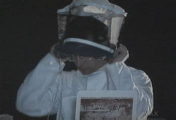 hidden behind an upside-down picture of the picnic table area he's just finished eating at. The lunch wasn't very good.