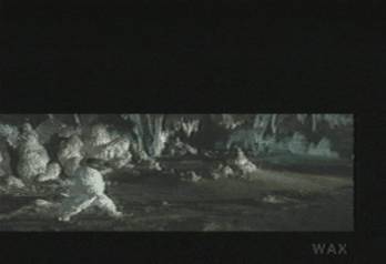 Jacob walks along a strip-corridor at the bottom of the tunnel-shaped frame, heading though the cave towards other shots not connect to this one by any more than the motion of time, the trajectory of his simple body shape, and the strange unity of the square, which only allows the diagonal as opposition, and so effectively swallows all resistance.