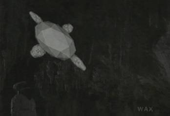 appears again above him, in strange perspective.