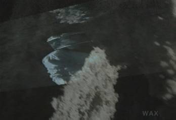 Jacob has begun to walk again. He appears from behind an outcrop at the top of the frame, heading towards the top of the cave. He is traveling so fast, that the outcrops and other parts of the landscape have blurred and stretched, almost as if he was approaching the speed of light, there in the dark.