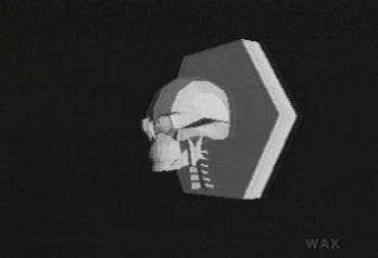 hexagon hides and reveals a skull, which uses the rotation to scan the