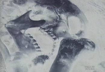 nose bone up to who knows whose thigh bone (probably its own), and seems quite happy about the fact, which we register through an open-jawed expression which may actually be more permanent than any sleep-made happiness.