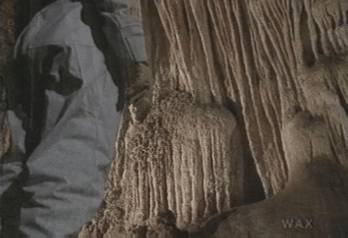 His knee appears. Jacob is in fragments, lost in one of those moments before the truth of transubstantiation through cave life have been revealed to him. Q... How often do you meet your future self on the street with a sign of recognition? Less than often, and it certainly doesn't happen for him here now. Just more confusion, that's the answer.