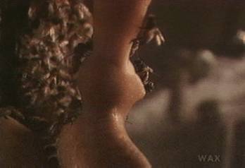 We get close the shoulder of one of the figures, a woman who might be