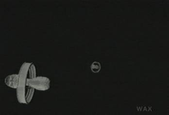 The hermaphro-wheel drops into darkness, and as usual we question whether the one we see dropping in this shot is the one we saw spinning in the last shot.