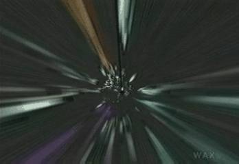 View down the long-foreshortened tube, which pulls away from the searching eye, changing its perspective variables to show itself as a shorter shape rotating in front of us. We get a momentary glance through this gizmo, before it softly twirls around in an attempt to present us with a view through the other end. The round edge of the telescope will, without any contradiction at all, connect to the square frame of the screen.