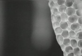 Back at the cave, the bees are watching, out of black and whitecomb, probably located somewhere near the underarm of the apisculpture bodies that stand all night in the light, waiting for their future inhabitants. Each of these little cells stuck to the edge of this frame are eyes that look in slightly different directions; the bees, hiding in the dark, make their picture of the world out of all those fragments.