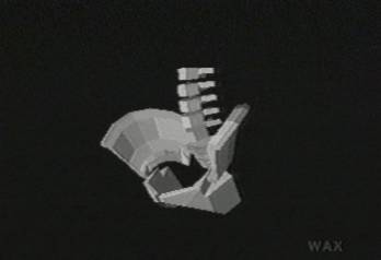Smaller hipbones of a dissected or spontaneously reassembling body. Hips like collars under the chin of the skull (seen a second ago). Knees retracted up up up, under the chin, into the head; there, knee pad and leg bones find second use inside the inner ear, as bone sensors, good for picking up and amplifying the heavier rumbles that pulse the airless void.