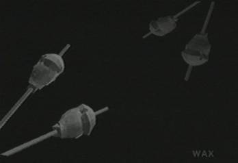 anchored in bottom left. Probably it is a fish lure, and we are looking at it upsidedown, as a sick fish (ready to bite) might.