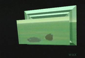 The side walls of this strange memorial, made from the green patterns of abstracted landscape glued to polygonal walls, which begin to collapse like a magician's tophat. The rabbit-carrying central section thickens, preparing to reveal the magic animal it is carrying. When the flat small flat tip, once the top of a memorial tombstone, has thickened enough to resemble a flat screen television, we see a small tank appear there, central character in the short commercial which is just beginning to roll. The tank goes bang. The tv rotates, and we burst through.